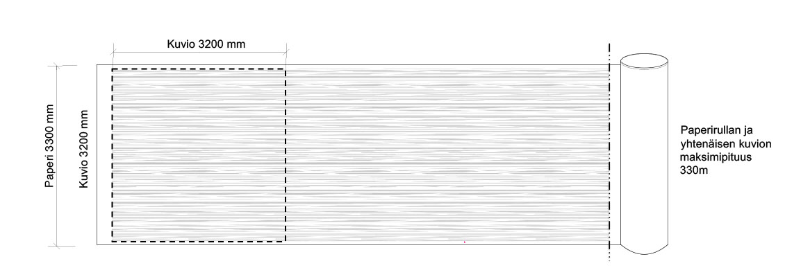 - Yhtenäisen kuvion maksimipainokorkeus paperilla 3200mm