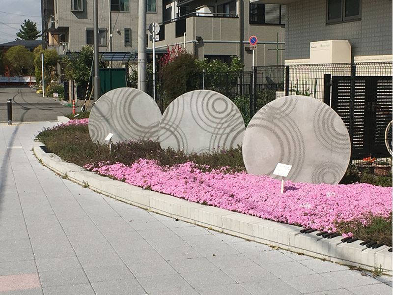 Osaka College of Music presents an example of street art with Graphic Concrete. As a design motif, ripples in the water were transferred to the concrete objects by using Graphic Concrete technology.