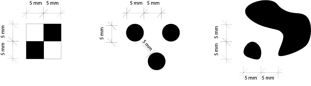 Toinen tärkeä asia on muistaa, että lopputulos on betonia ja rakentamisen mittakaava on yleensä melko suurta. Graafisen betonin tekniikalla suosituksena on, että mikä tahansa mustan tai valkoisen alue kuviossa olisi minimissään 5mm.