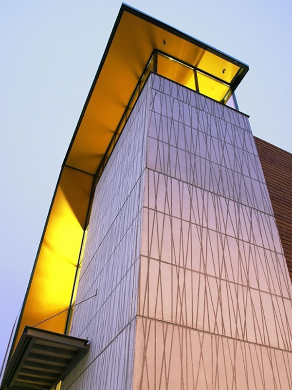 Eines unserer ältesten Referenzprojekte beweist, dass die Kanten von Graphic Concrete scharf und die Kontraste erhalten bleiben. Alterungsspuren zeigen sich nur dort, wo regelmäßig Wasser über die Oberfläche läuft – ein Effekt, der bei allen Betonfassaden vorkommt und sich leicht mit Hochdruckreinigung beheben lässt.