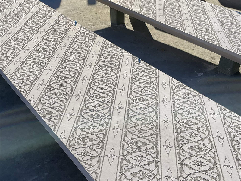 Kuva 8. Kuvio painettuna Graafisen betonin paperille & Kuva 9. Kuvio betonielementin pinnassa
