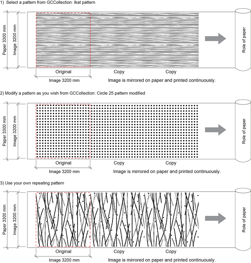 The most cost-effective approach is to create a seamless, repeatable pattern with a maximum size of 3200 x 3200 mm (10'6" x 10'6"). This pattern can be printed in a continuous, wallpaper-like format onto the Graphic Concrete paper, keeping costs down while delivering visual impact.